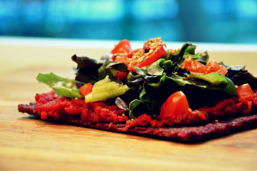 Milujete Itálii? Tak to je naše RAW Italská pizza. Placka z červené řepy, jemně umletých slunečnicových semínek, pohanky, trocha cibulky a italského koření. Rajčatová pasta se zeleninou tomu dává šmrnc. Lehce pikantní díky chilli!