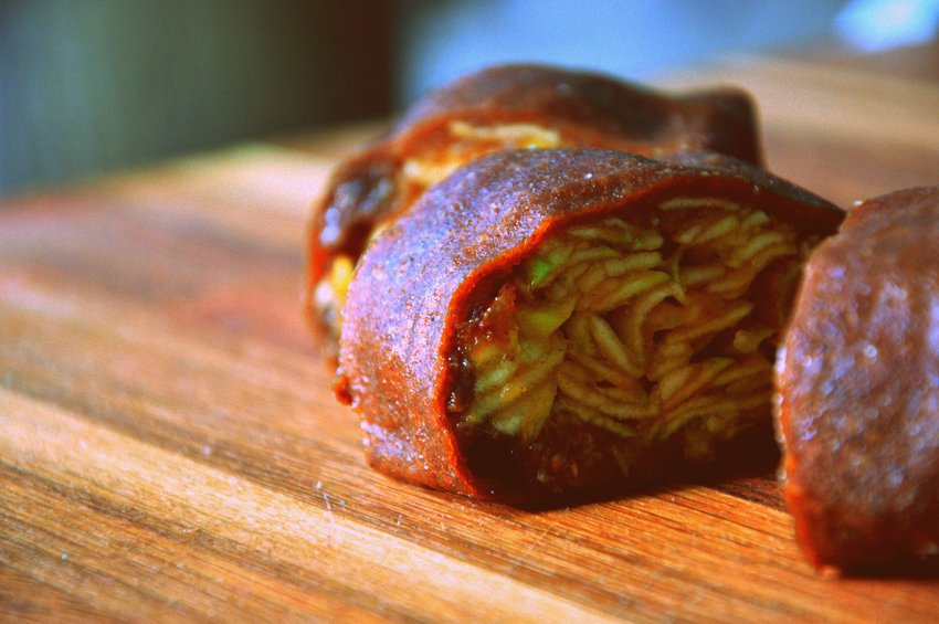Štrůdl je v naší nabídce od letošního jara 2016 a za tu dobu si našel své velké fanoušky :). Je úžasně vláčný, jablkový, velmi chutný a hlavně neskonale božský :) Hlavní náplní jsou jablka, rozinky, datle a skořice. V našem RAW štrůdlu zachováváme principy TOP živé stravy, tedy dodržujeme zásady správných kombinací potravin. Proto do štrůdlu nepřidáváme ořechy. Také někdy do štrůdlui přidáváváme makovou náplň :)